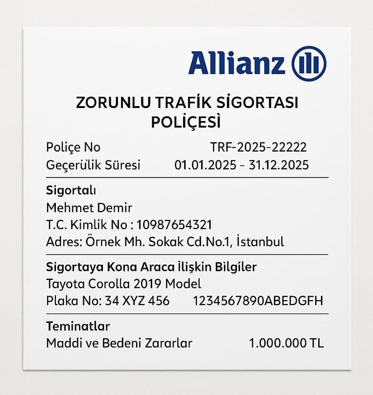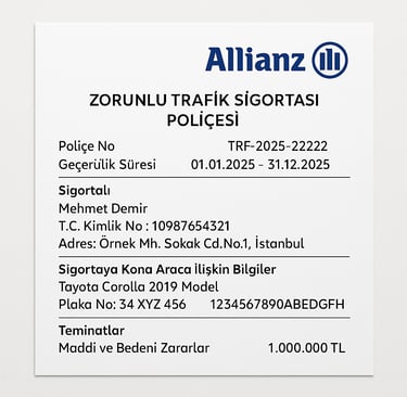Araç 2: Allianz Sigorta – Poliçe No: TRF-2025-22222 – Geçerlilik: 01.01.2025 – 31.12.2025