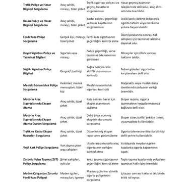 Trafik, kasko, sağlık, hayat ve ferdi kaza sigortaları poliçe bilgilerini sorgulama,